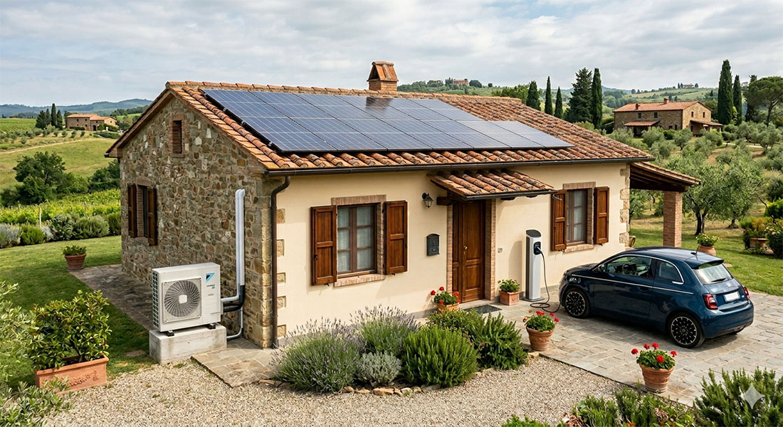Se decidi di rendere la tua casa davvero indipendente abbinando alla Pompa di Calore un Impianto Fotovoltaico e una Colonnina di Ricarica, Novelettra elimina ogni ostacolo economico applicando lo sconto in fattura immediatamente.